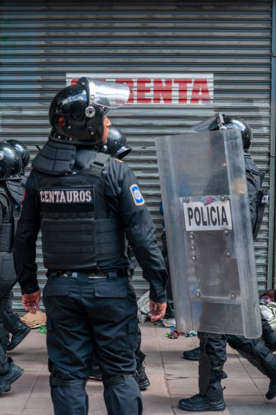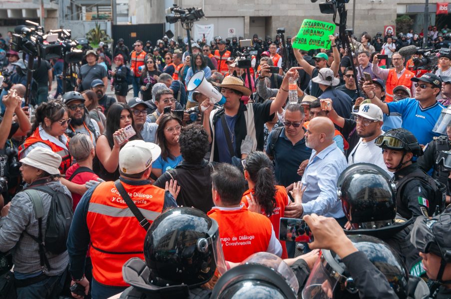 “A la prensa queremos comunicarles, expresarles que hace unos instantes sufrimos un despliegue policiaco de represión en contra de las juventudes, en contra de la comunidad sexodiversa, en contra de las mujeres que el día de hoy venían a manifestarse de forma pacífica: en contra de la gentrificación, en contra del desplazamiento de miles y miles en las periferias; en ese sentido, llamamos a una movilización pacífica que dialogue con distintos sectores. ¡Hasta la victoria siempre, compañeros!”